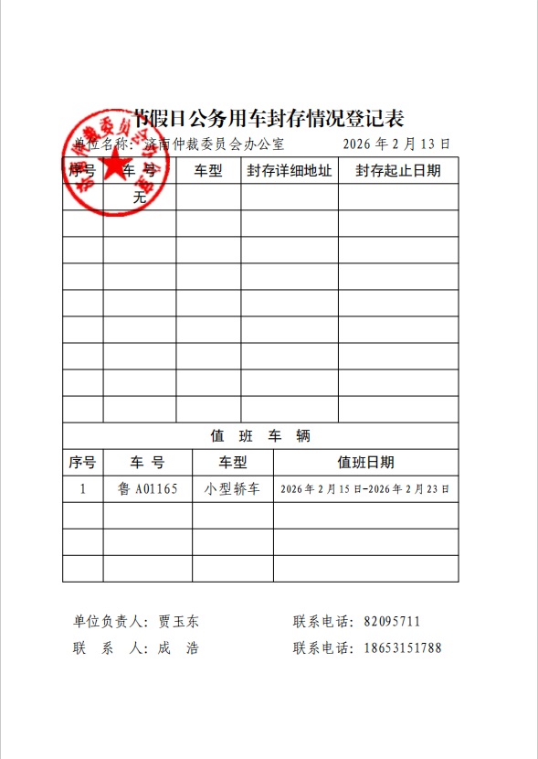 春节期间节假日公务用车封存情况登记表
